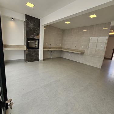 01 sala de estar no 1º andar, Garagem para 03 carros, Escritório com móveis planejados e ar condicionado, Área gourmet com churrasqueira, cooktop e lavabo, Usina fotovoltaica gerando 600kw, Espaço de despensa.